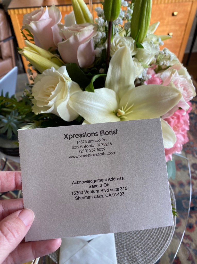 - Send the flowers. This is a debatable point, as some people feel flowers and plants end up being one more thing to manage during a difficult time. But I fall on the side of sending something sweet, as you might a card or a note. The flowers pictured above were the first thing that greeted my after my father passed away in 2021. A friend in LA, whose partner is the icon actress Sandra Oh, sent them immediately after hearing news of Dad’s death and they really were a bright spot. It reminded me people cared — and knew. Sometimes flowers can do that, so I say send them.